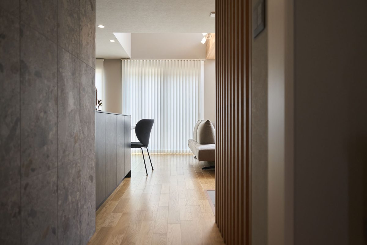 Q.家づくりで拘ったことは何ですか?家事や生活の動線と、生活感を出来るだけ見せない工夫にこだわりました。片付けやすい間取りにすることで、暮らしやすさと見た目の両方を大切にしました。